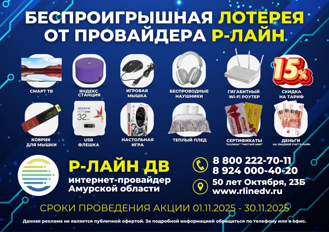 С 1 по 30 ноября компания Р-Лайн запускает БЕСПРОИГРЫШНУЮ ЛОТЕРЕЮ для жителей с.Тамбовка!